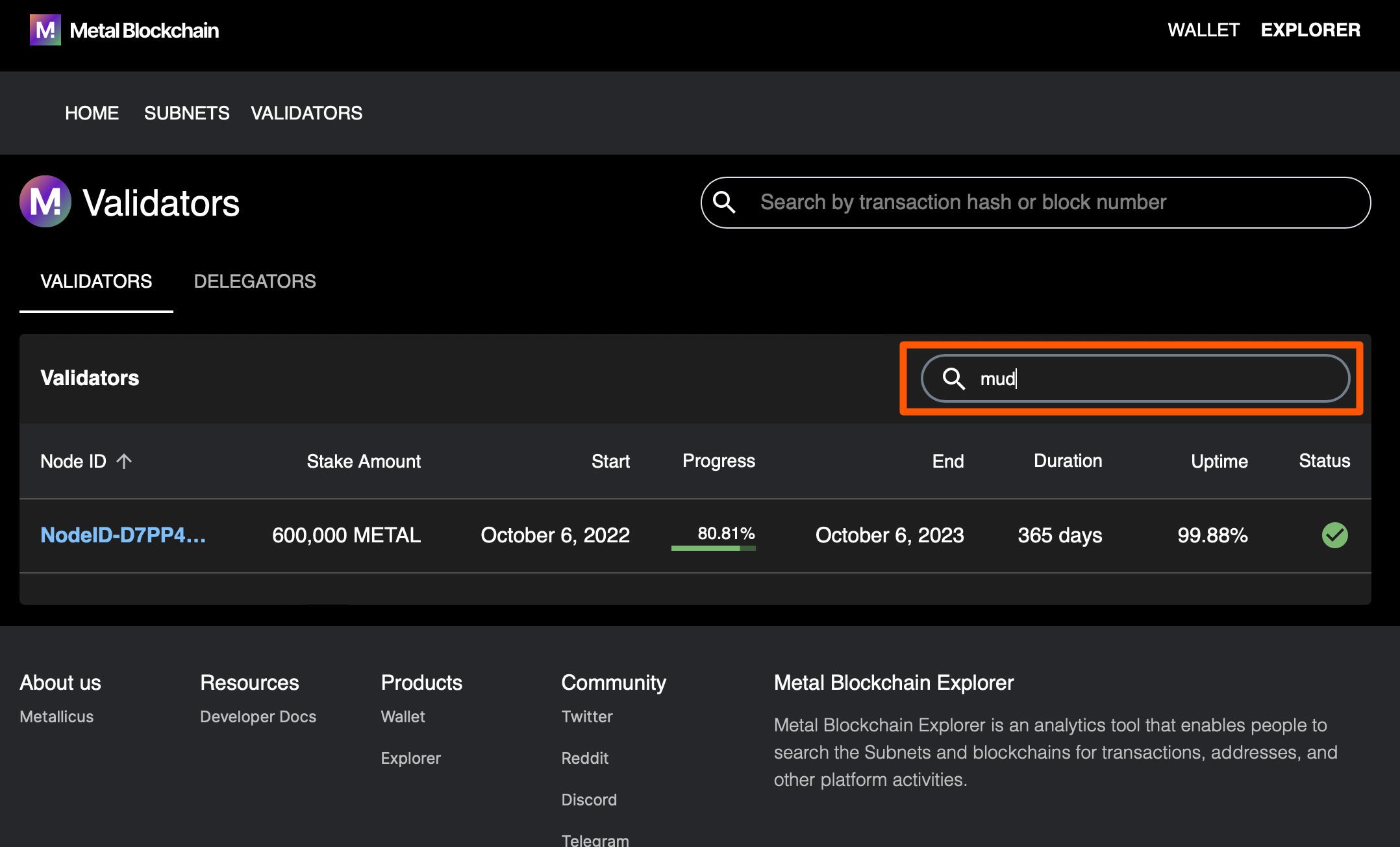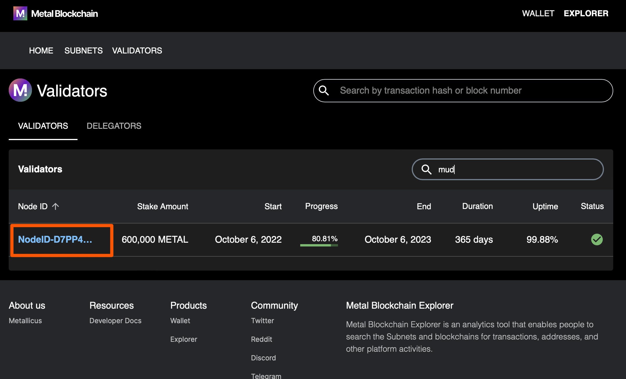 Step 1: Explore the validator’s page on the block explorer by clicking here.